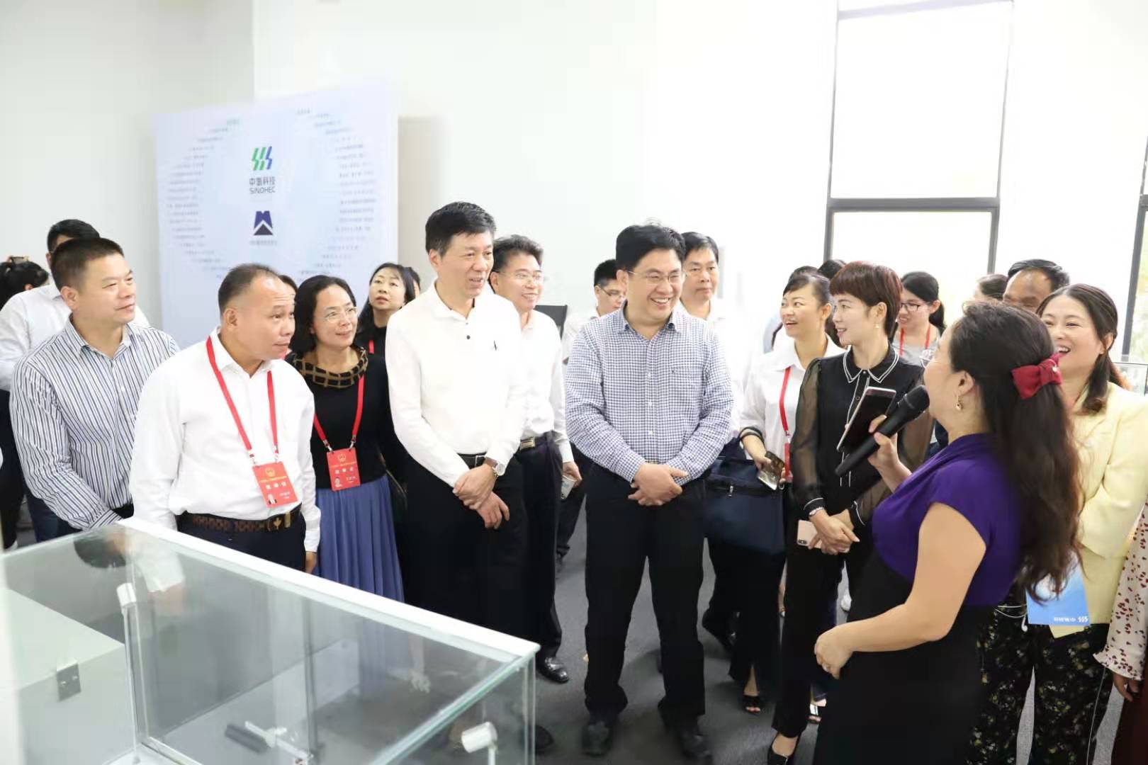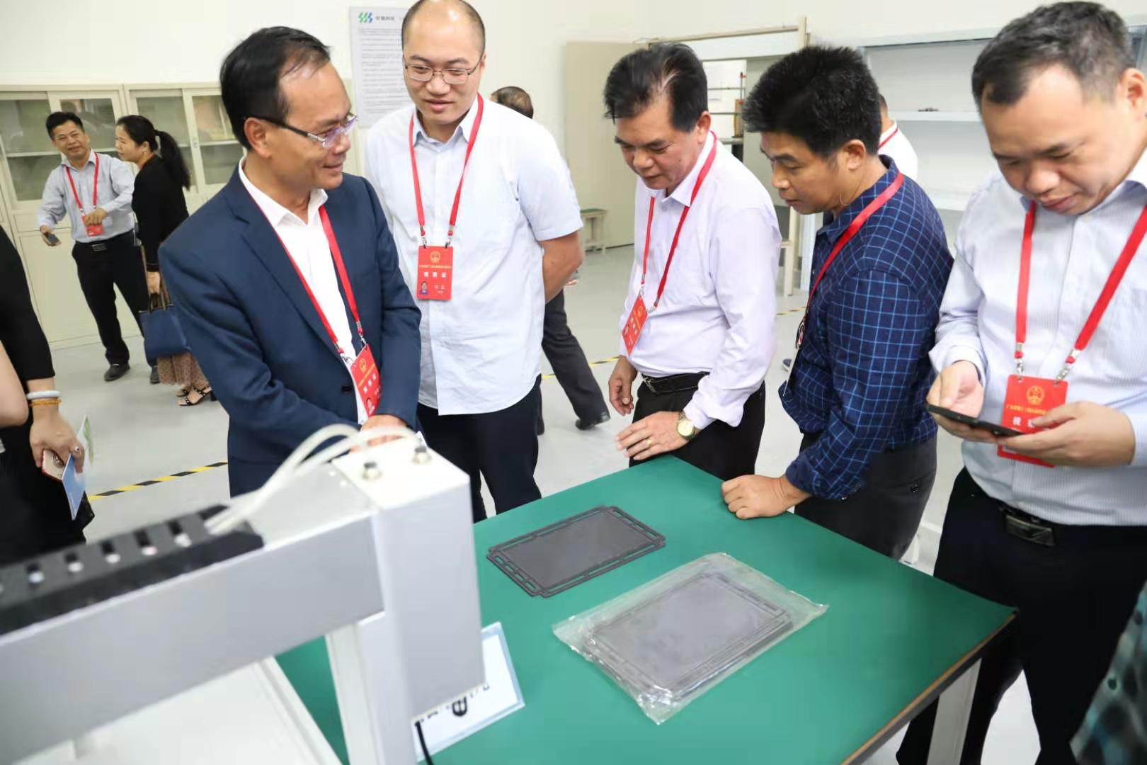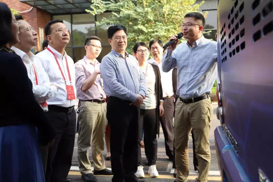 鄧永明一行首先參觀了中氫科技茂名氫燃料電池電堆產(chǎn)品展示中心,了解了正在建設(shè)的氫燃料電池技術(shù)示范生產(chǎn)基地的相關(guān)情況。在引導(dǎo)下,代表們觀摩了搭載著由中氫科技自主研發(fā)的60kW氫燃料電池發(fā)動(dòng)機(jī)系統(tǒng)的12米奇瑞氫燃料電池城市客車。