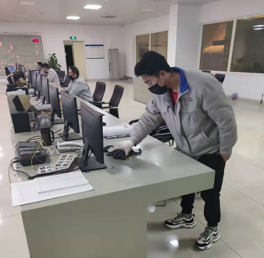 做好項(xiàng)目現(xiàn)場疫情防控工作是首要。當(dāng)面對各種防疫物資緊缺,購買不到消毒液和醫(yī)用酒精時,中機(jī)國能寧東熱電有限公司努力創(chuàng)造條件解決問題。公司結(jié)合自身現(xiàn)有的生產(chǎn)用次氯酸鈉庫存,與其它化工企業(yè)協(xié)商借調(diào)酒精庫存,并邀請寧東公共衛(wèi)生中心專業(yè)人員按比例調(diào)配出符合要求的消毒液,最終廠區(qū)的衛(wèi)生安全得以有效保障。