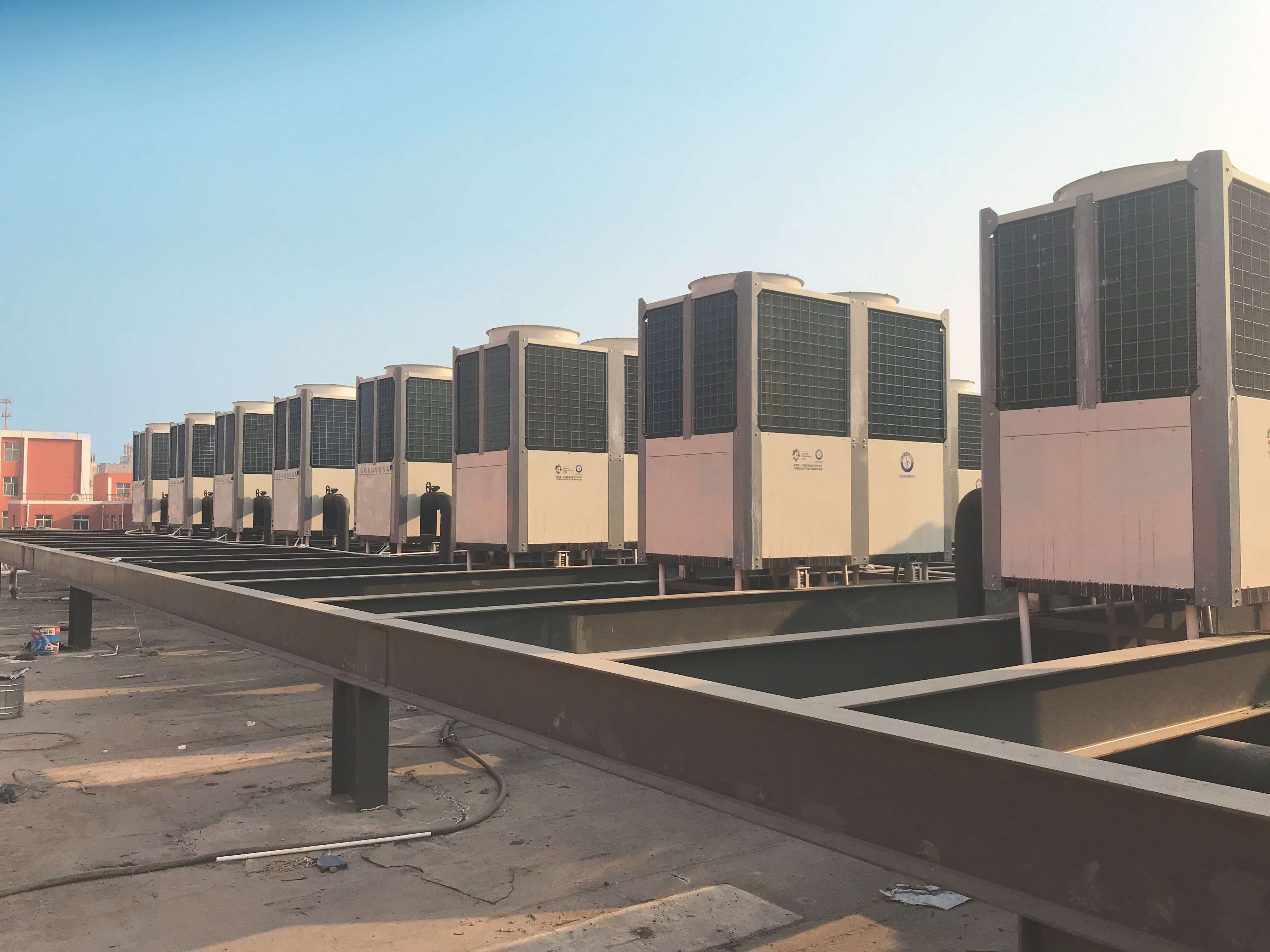 趙縣集中供暖項(xiàng)目共設(shè)立46座分布式空氣源熱泵站,分布在縣城的各個(gè)區(qū)域,為當(dāng)?shù)鼐用窈蜕虡I(yè)用戶(總計(jì)約400萬平米取暖面積)提供集中供暖服務(wù)。藍(lán)科高新以技術(shù)及成套設(shè)備供應(yīng)商的身份參與該項(xiàng)目的工程設(shè)計(jì)優(yōu)化,全程主導(dǎo)技術(shù)方案優(yōu)化,設(shè)備選型及監(jiān)造,提供了1200臺(tái)60匹超低溫空氣源熱泵機(jī)組。在熱泵供暖主機(jī)的設(shè)計(jì)制造過程中,藍(lán)科高新與供應(yīng)商共同對(duì)關(guān)鍵設(shè)備的性能和可靠性進(jìn)行了優(yōu)化 。