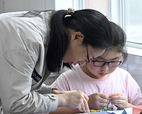 隨后,志愿者們還為同學(xué)們精心準(zhǔn)備了一堂“積木花”手工課。志愿者們說,孩子們是中國的未來、是社會主義接班人、是祖國的花朵,希望通過積木花的制作,把對孩子們的愛護(hù)傳遞給大家。