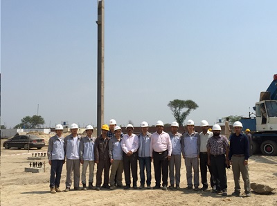 中機(jī)電力項(xiàng)目部自3月13日澆灌第一方混凝土以來(lái),克服了土建圖紙及設(shè)備材料海運(yùn)滯后等多重困難,與當(dāng)?shù)赝两▎挝患鞍惭b單位共同努力,于2015年6月5日上午10時(shí)18分開(kāi)始吊裝1#鍋爐鋼架。該項(xiàng)目節(jié)點(diǎn)的按期完成獲得業(yè)主的高度肯定。