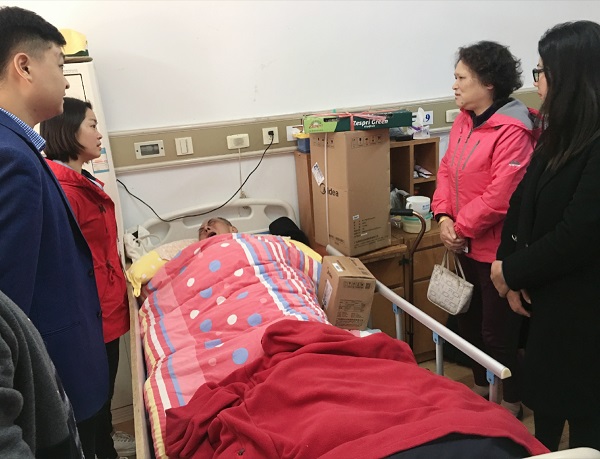 11月20日,在宜川街道黨建中心和華陰居委會(huì)領(lǐng)導(dǎo)的帶領(lǐng)下,集團(tuán)青年代表們前往老人住處,送上料理機(jī)和水果的同時(shí)也帶去了集團(tuán)黨團(tuán)青年們誠(chéng)摯的問(wèn)候與祝福,鼓勵(lì)他配合治療,堅(jiān)持康復(fù)訓(xùn)練,相信不久的將來(lái)一定可以重新站起來(lái)。病床上的鐘叔叔雖然不能說(shuō)話,卻多次激動(dòng)地留下眼淚。