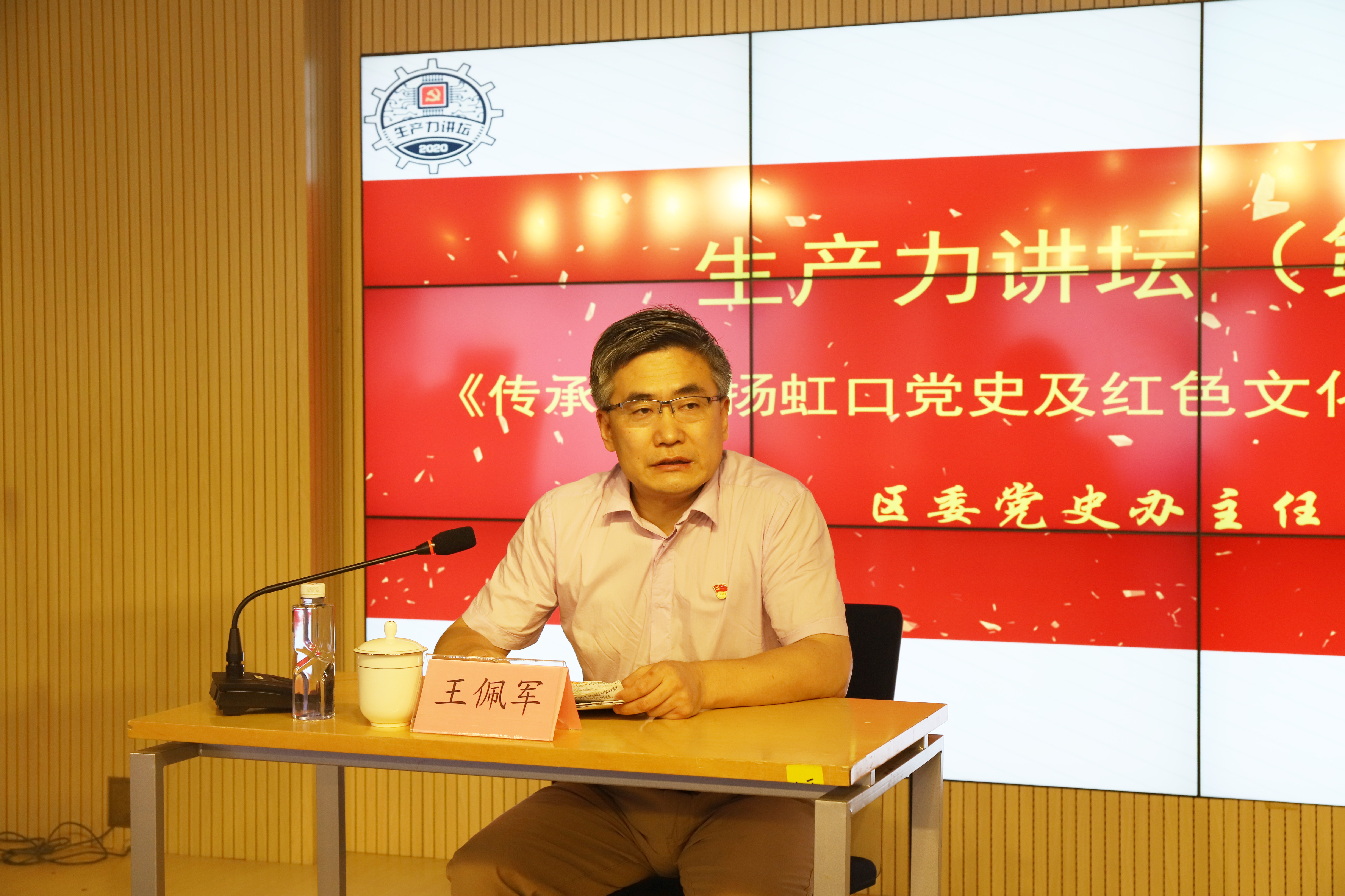在活動中,虹口區(qū)委黨史辦主任王佩軍作《傳承和弘揚(yáng)虹口黨史及紅色文化資源蘊(yùn)含的價值基因》專題黨課,從虹口黨史及紅色文化資源的基本概況、近期保護(hù)研究與開發(fā)利用、傳承和弘揚(yáng)其蘊(yùn)含的價值基因三方面進(jìn)行了精彩的闡述。