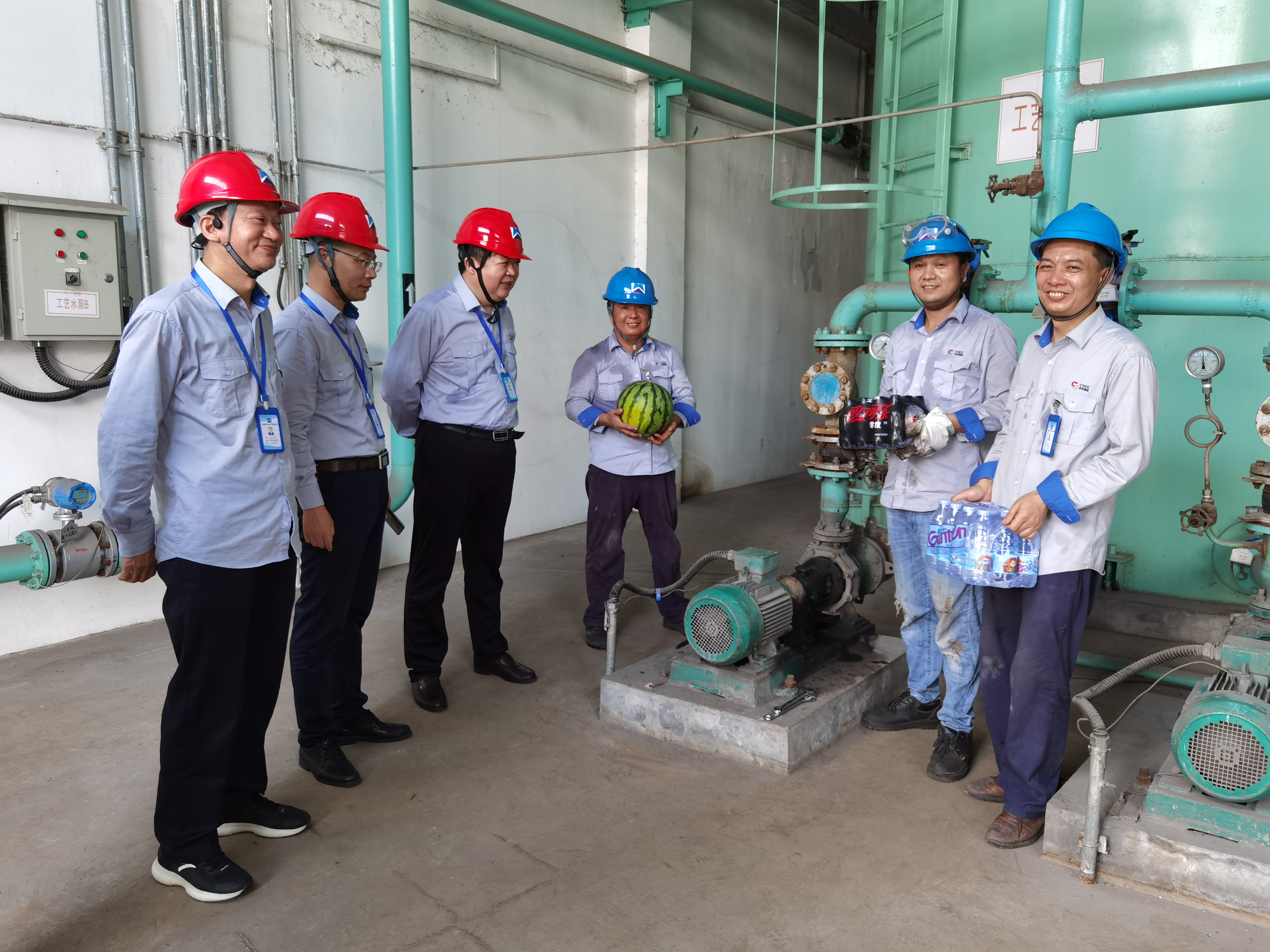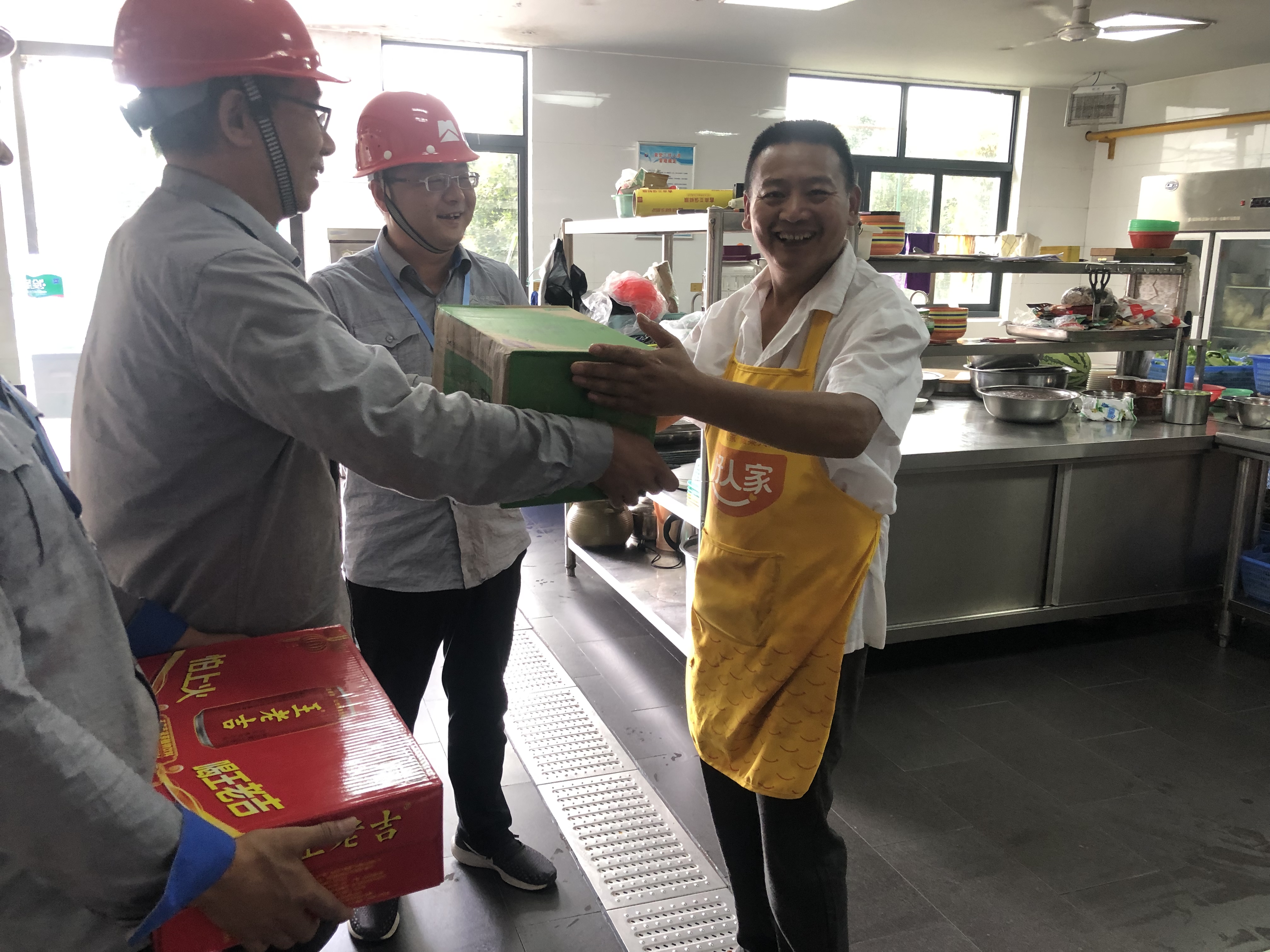 中機(jī)眉山公司領(lǐng)導(dǎo)帶隊(duì)深入生產(chǎn)現(xiàn)場(chǎng),仔細(xì)了解一線(xiàn)職工工作情況,對(duì)他們的辛勤付出表示感謝,叮囑他們要注意自身防暑,并為食堂工作人員送去清涼,要求食堂要?jiǎng)?wù)必以人為本,關(guān)心職工的健康,保障食品安全,確保一線(xiàn)職工身體健康。